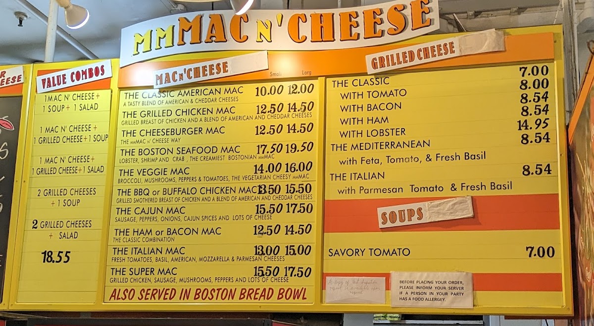 Introducing the menu at Mmmac N' Cheese, a haven for mac and cheese enthusiasts nestled in the bustling Faneuil Hall Market of Boston. This delightful eatery showcases an array of mouth-watering combinations that elevate the beloved comfort food to new heights.